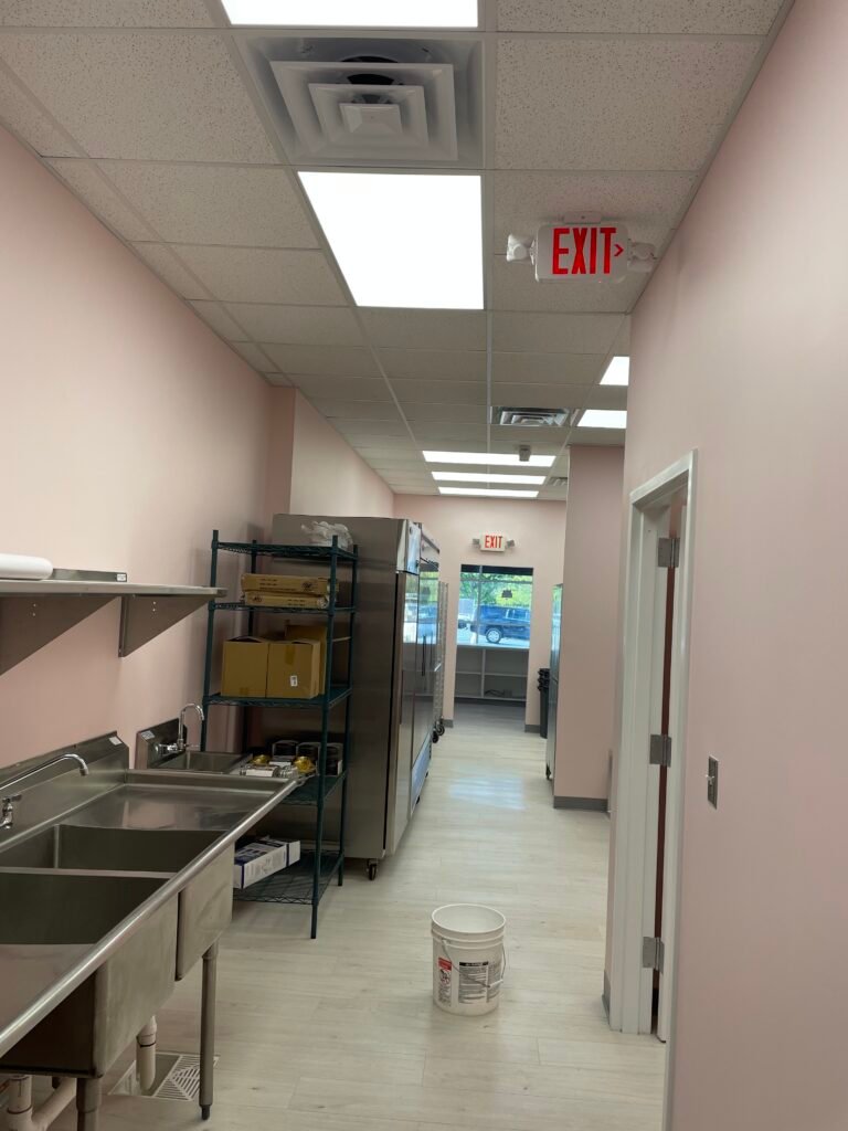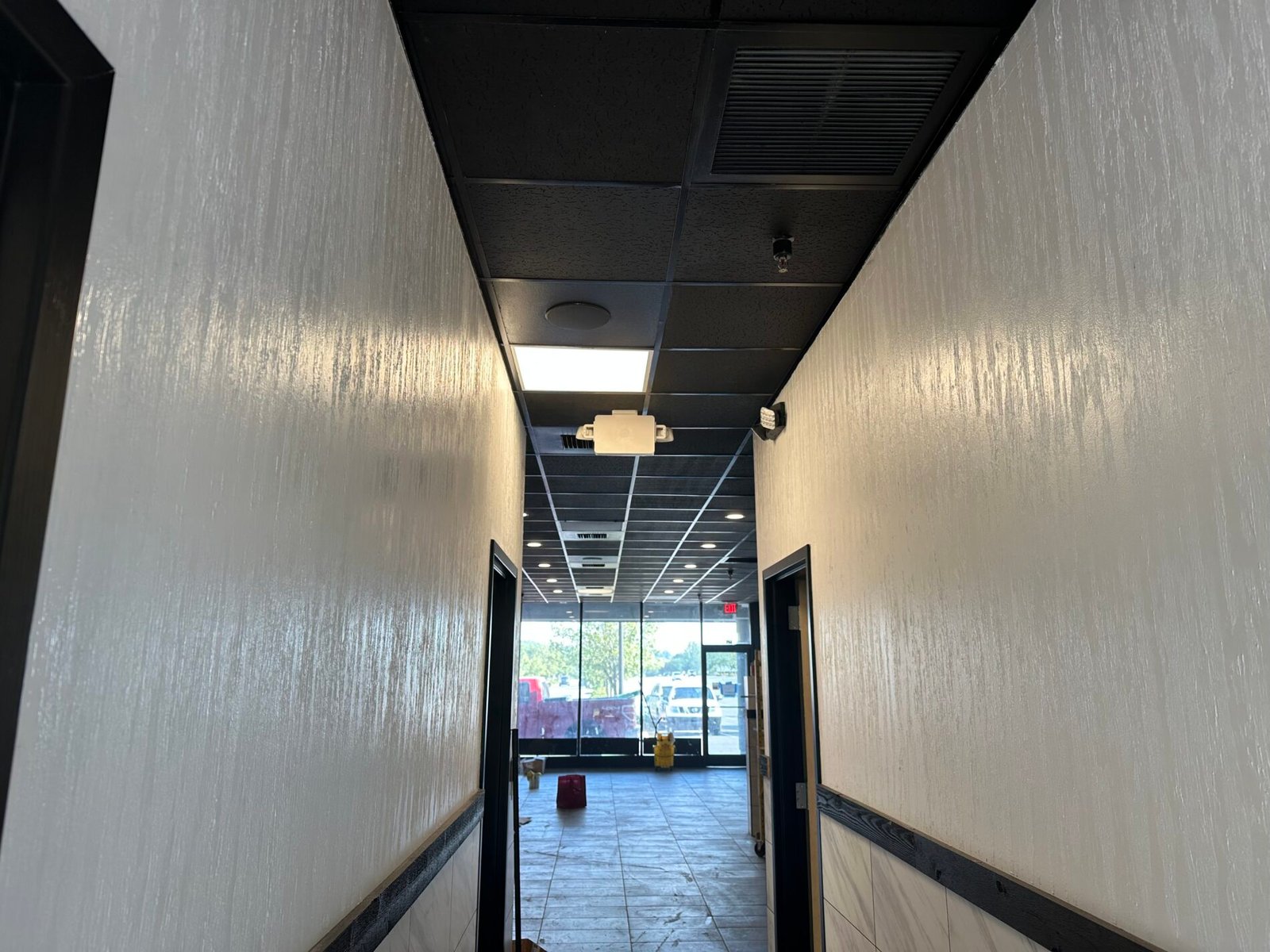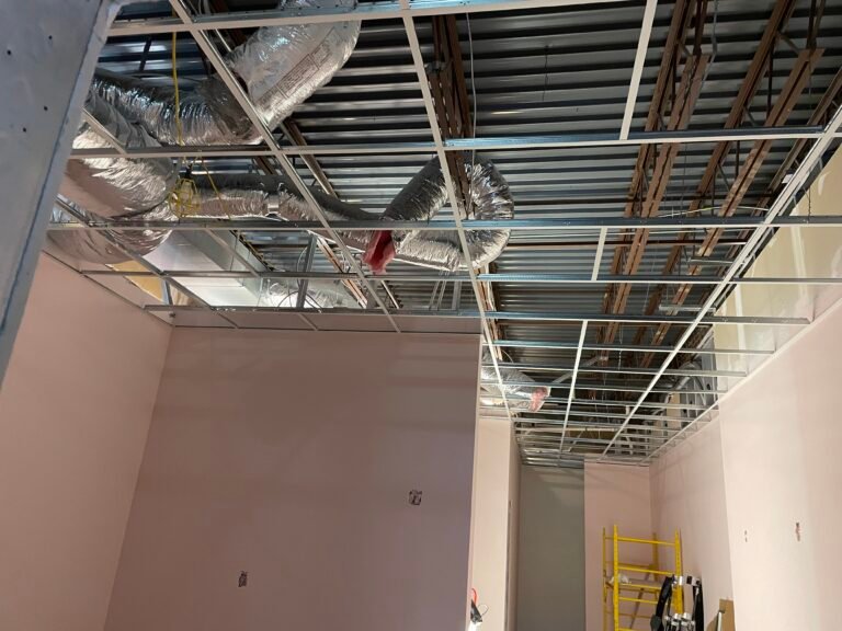 Installation of acoustic ceiling tiles to improve sound quality and reduce