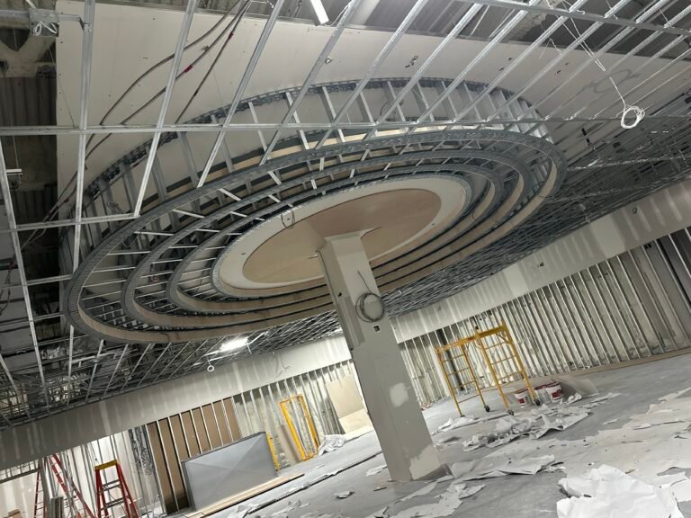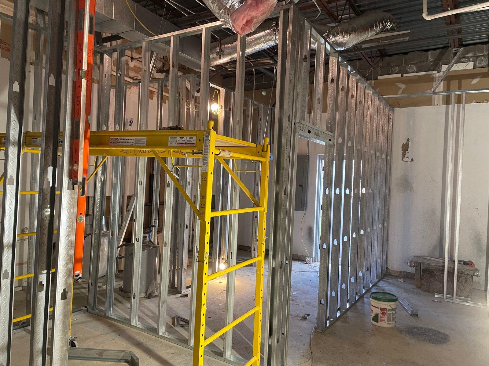 Construction of metal framework for walls and ceilings, providing a durable