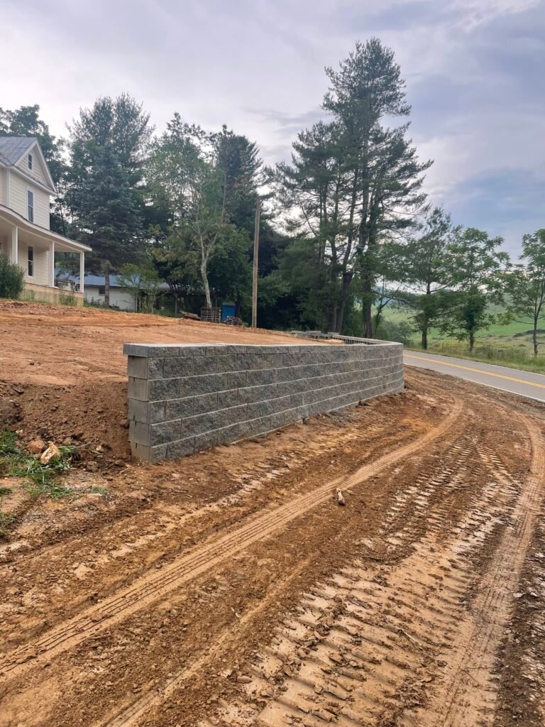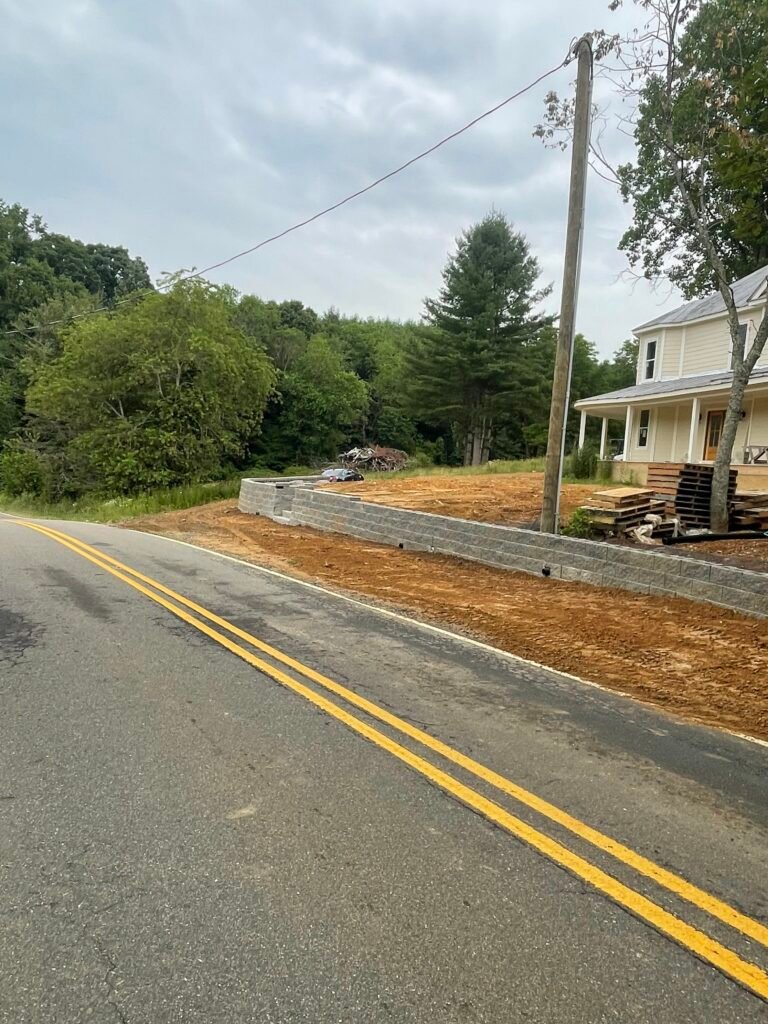 Construction of retaining walls to manage soil erosion and create leveled